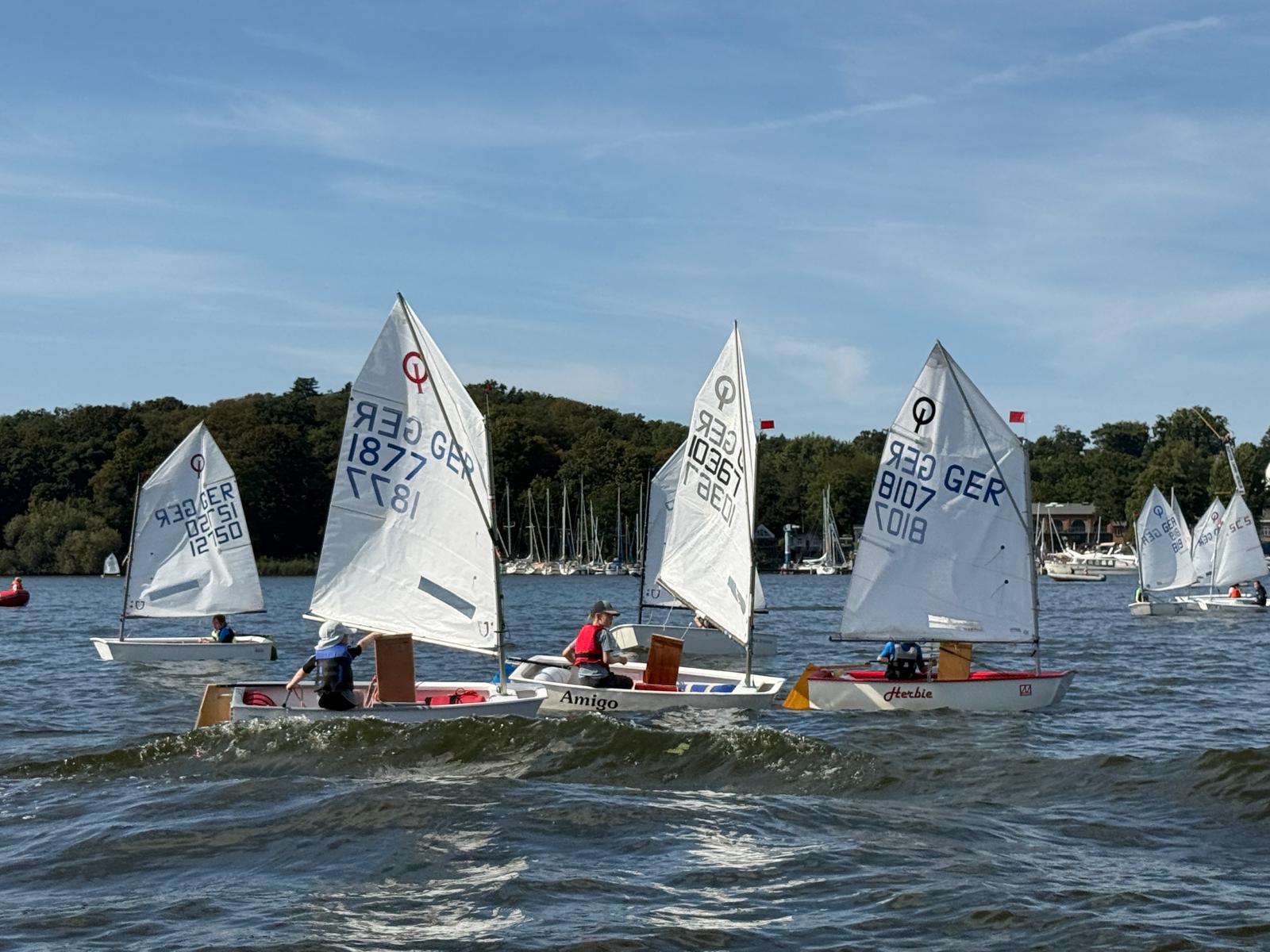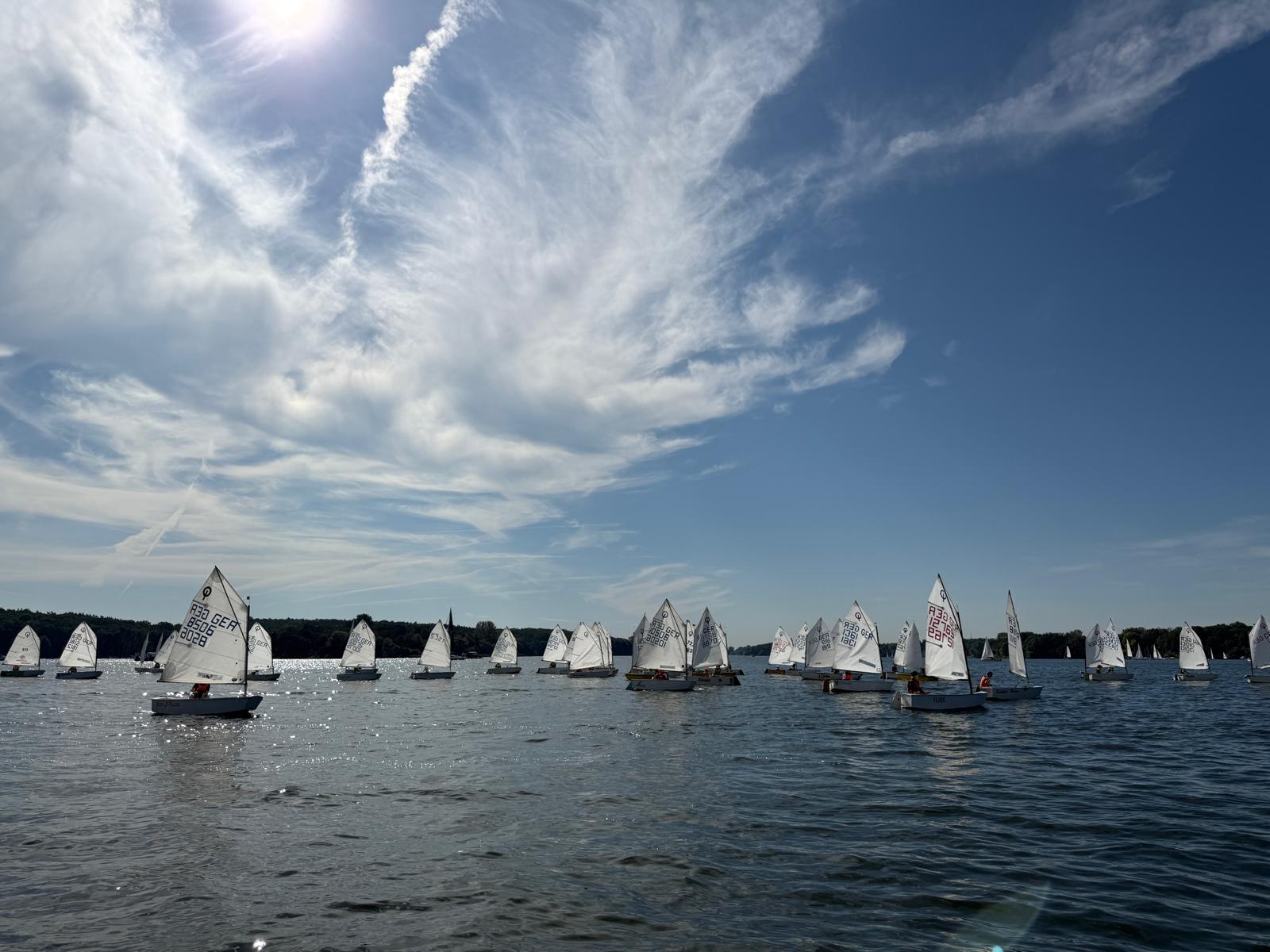 Bei perfektem Wetter mit 27 Grad, Sonne und gutem Wind wurden drei Wettfahrten auf einem Up-and-Down-Kurs vor der Marina Lanke gesegelt. Insgesamt gingen 54 Optis an den Start. Nach einem allgemeinen Rückruf beim ersten Rennen liefen die weiteren Starts reibungslos ab.