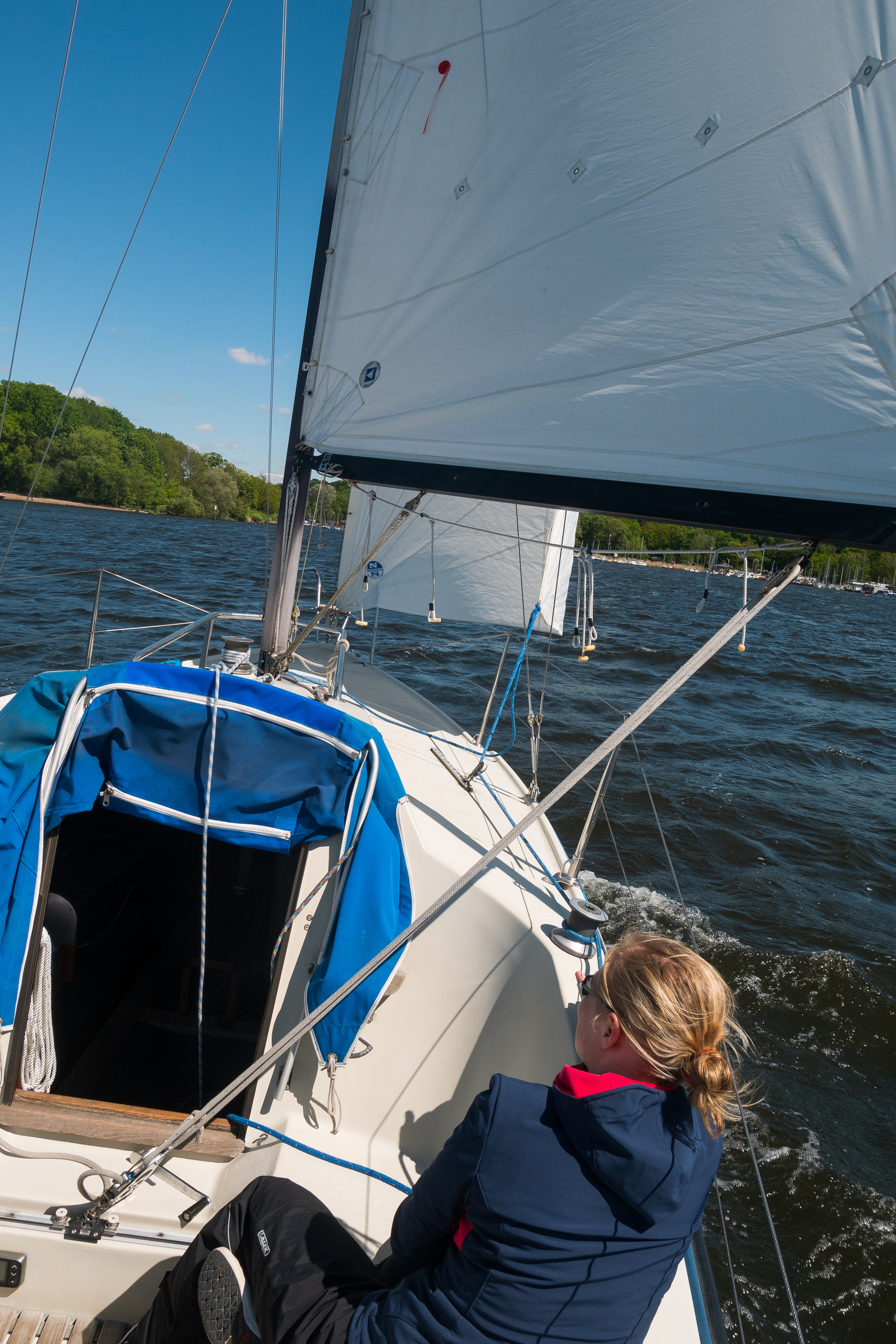 Am 01.05.2018 sollte es eigentlich mit dem Yardstick-Cup weitergehen. Round the Island vom Britischen Yachtclub. Leider hat der Wind eine Teilnahme verhindert. Ohne Maschine war bei dauerhafter Windstärke sechs gegenan auf den Hafen kein Losfahren möglich. Stattdessen wurde dann kurzerhand in den „Entspannungsmodus“ gewechselt und eine Ausfahrt auf Mascha gemacht. Selbst mit Maschine war es ein Kampf gegen Wind und Material, der am Ende aber dennoch mit einer schönen Runde belohnt wurde. An der großen Breite konnten wir dann auch die Teilnehmer der Round the Island unter Spi einfahren sehen. Sportliche Leistung bei der Windstärke.